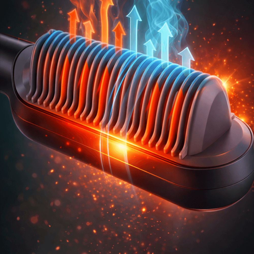 Urządzenie zostało zaprojektowane z myślą o bezpieczeństwie. Osłonięte elementy grzewcze oraz izolowane końcówki zębów grzebienia chronią skórę głowy i dłonie przed poparzeniem. Stylizacja jest komfortowa i bezpieczna nawet przy wyższych temperaturach.